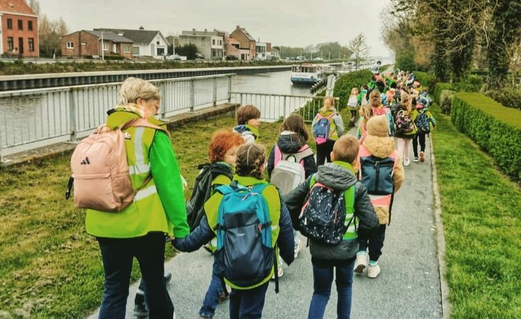 Daar gaan ze dan, de kinderen van het derde en het vierde leerjaar.